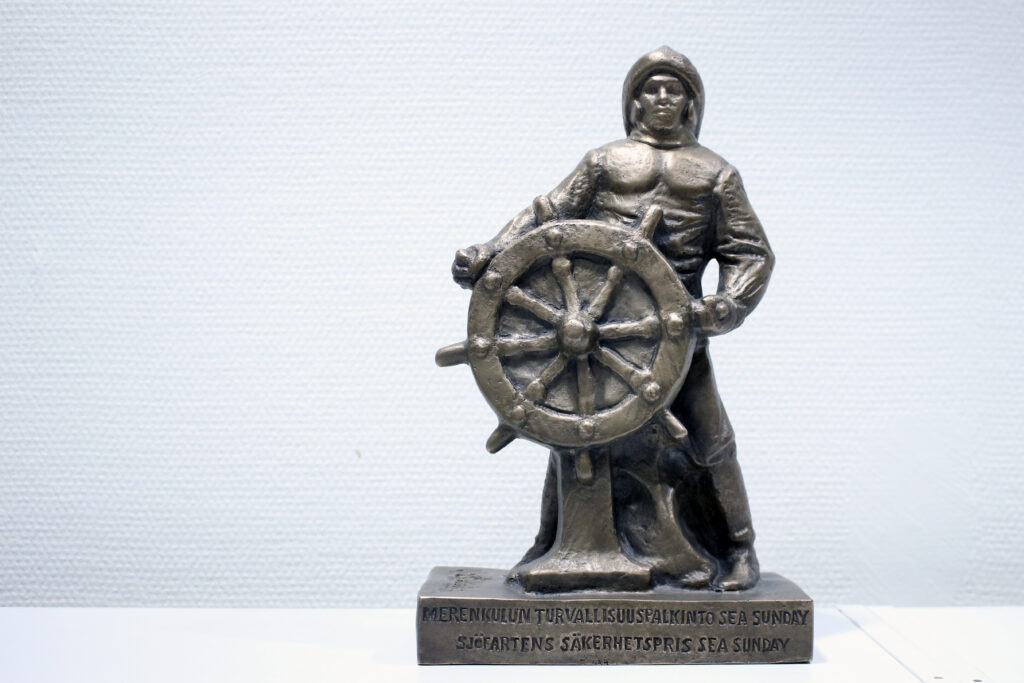 Merenkulun turvallisuuspalkinto on huomionosoitus, jota symbolisoi 36 cm korkea pronssivalu Emil Cedercreutzin Ruorimies-veistoksesta.